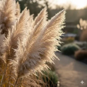 Pampasgras ist der unangefochtene Star, wenn es um dramatische Akzente geht. Die Sorte ‚Rosea‘ fügt mit ihren zartrosa Blütenständen eine weiche, romantische Note hinzu.
